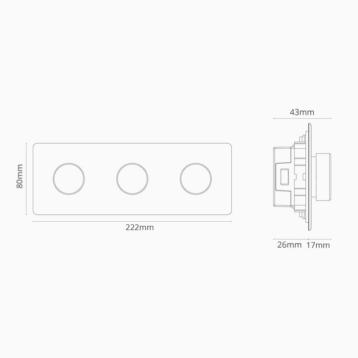 Corstons trippel 3x dimmerbryter er bare 2 mm tykk og har en skrueløs overflate, så den er ganske usynlig på veggen.